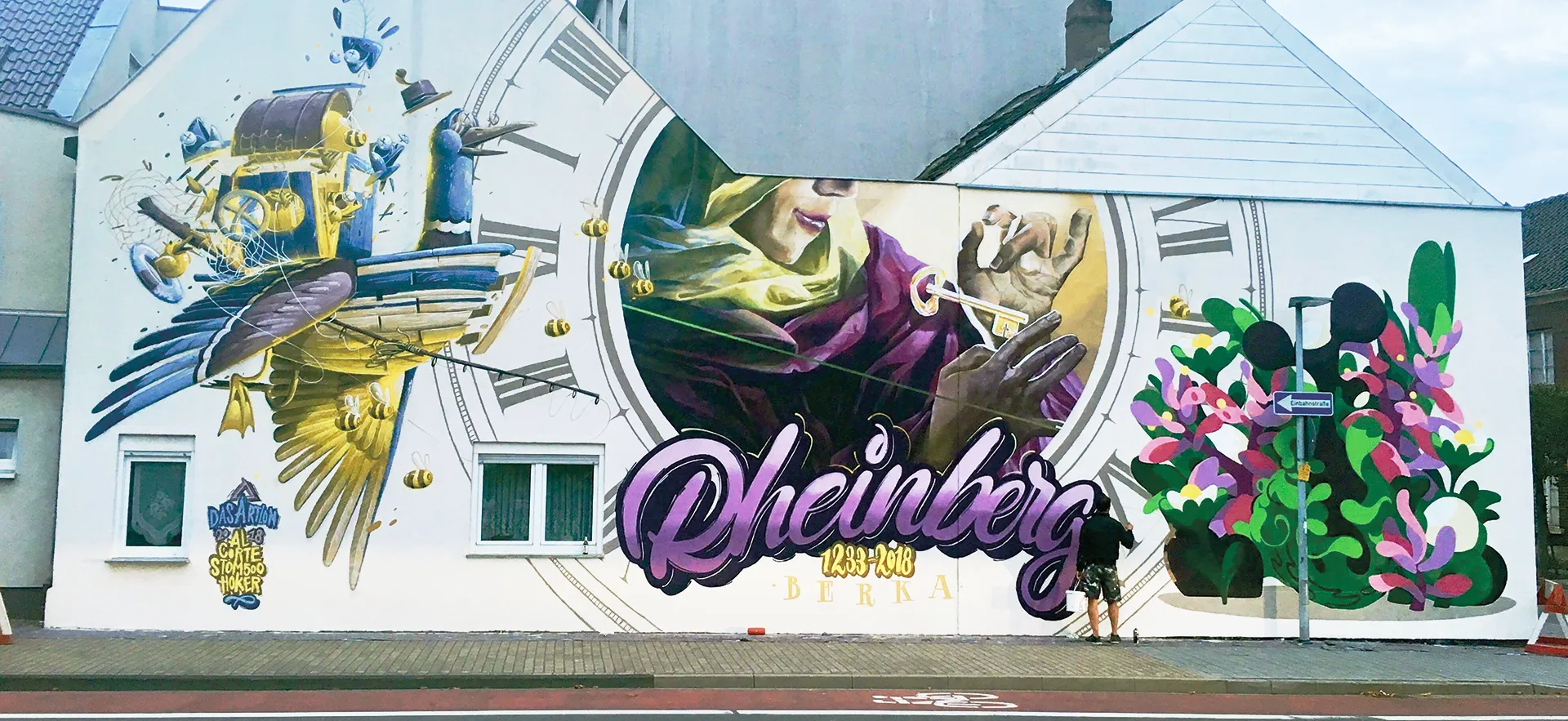 Im Zuge des MAP-Festivals – eines Kultur- und Musikfestivals in Rheinberg – hat der Förderverein für das Stadtmarketing Rheinberg e.V. gemeinsam mit Partnern die künstlerische Gestaltung einer Fassade am Innenwall initiiert. Die zuvor ungestaltete Wandfläche war vielen Bürgerinnen und Bürgern als wenig ansprechender Bereich mit Schmierereien bekannt.